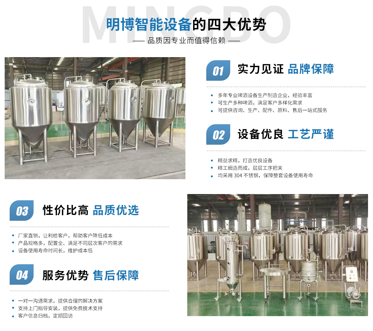 安徽明博智能設(shè)備有限公司位于安徽省宿州市宿馬園區(qū)馬鋼機(jī)械園2號(hào)廠房;我司擁有制造多年不銹鋼設(shè)備行業(yè)經(jīng)驗(yàn),主推生產(chǎn)大中小型精釀啤酒設(shè)備、果酒設(shè)備、啤酒實(shí)驗(yàn)設(shè)備、和提供釀酒技術(shù)支持的生產(chǎn)廠家。 公司經(jīng)營(yíng)范圍具體包含:食品、酒、飲料及茶生產(chǎn)專用設(shè)備制造;日用化工專用設(shè)備制造;制藥專用設(shè)備制造;環(huán)境保護(hù)專用設(shè)備制造;智能基礎(chǔ)制造裝備制造;金屬結(jié)構(gòu)制造;制冷、空調(diào)設(shè)備制造;氣體壓縮機(jī)械制造銷售等;我們是集設(shè)...